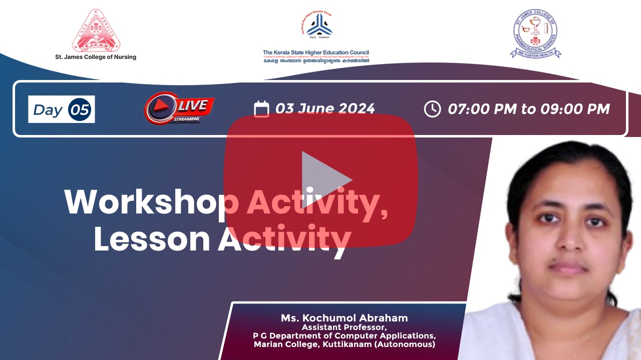Day 5: Workshop Activity, Lesson Activity by Ms Kochumol Abraham.