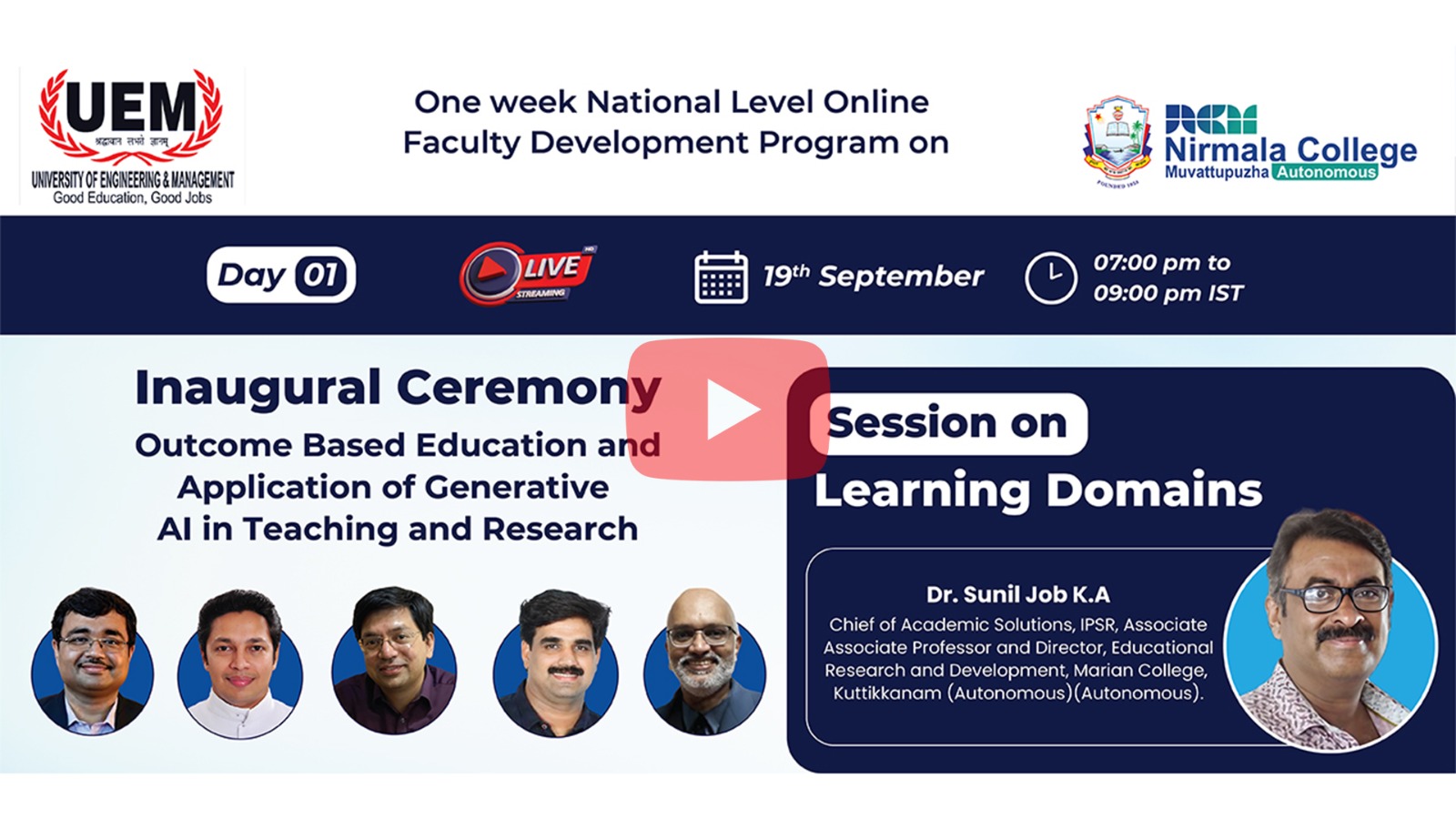 Click to watch the video recording of the first day’s session, Blooms Taxonomy - Learning Domains by Dr Sunil Job.
