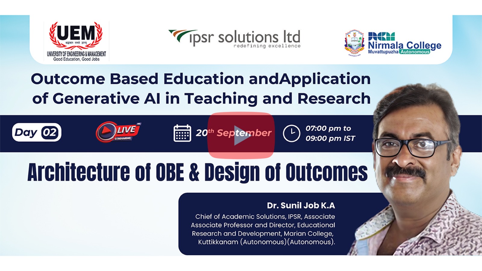 Click to watch the video recording of the second day’s session, Architecture of OBE & Design of Outcomes by Dr Sunil Job.