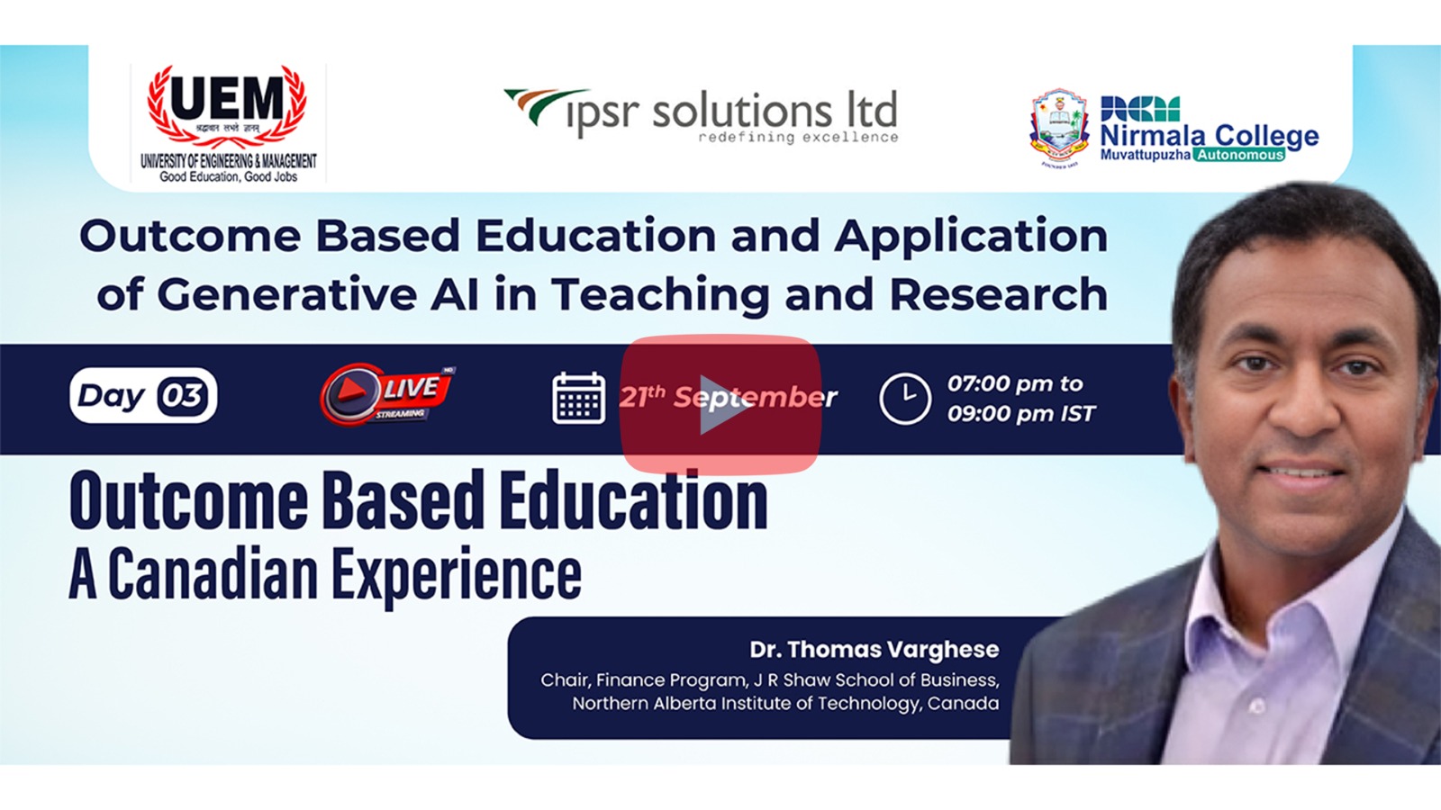 Click to watch the video recording of the third day’s session, Outcome Based Education - A Canadian Experience by Dr Thomas Varghese.
