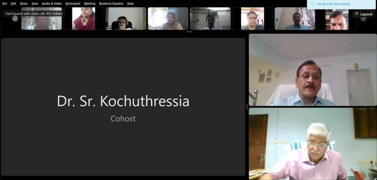 The welcome note for the event was delivered by Dr. Sr Kochuthressia K P, Principal, Carmel College, Autonomous, Mala. She has 26 years of teaching career in Botany and has 12 National and International Research publications, and 11 paper presentations, served as NSS Program Officer for 7 years, and held various coordinating roles.