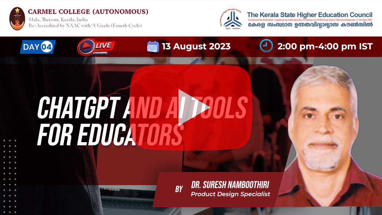 Click to watch the day-4 session ChatGPT and AI Tools for Educators by Dr Suresh Namboothiri.
