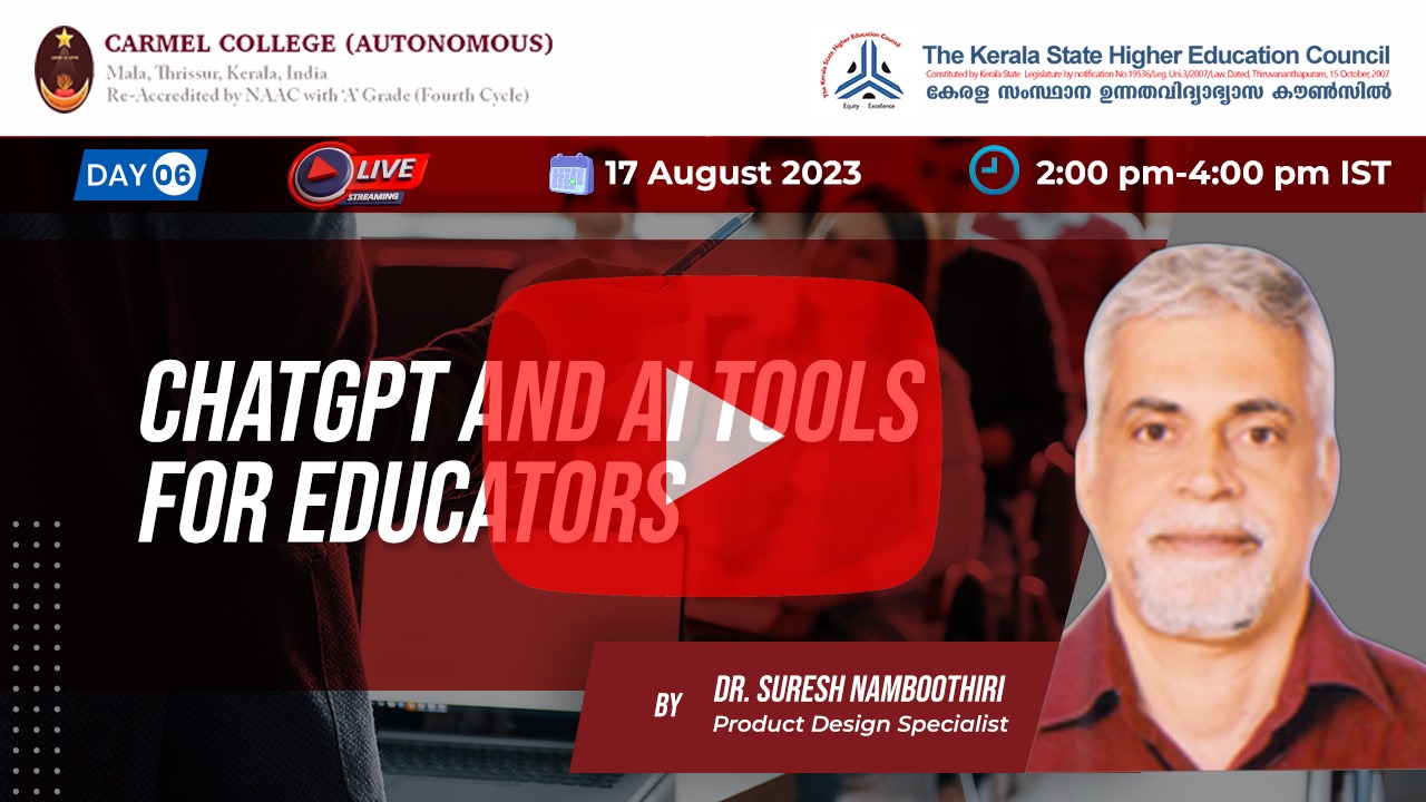 Click to watch the day-6 session ChatGPT and AI Tools for Educators by Dr Suresh Namboothiri.