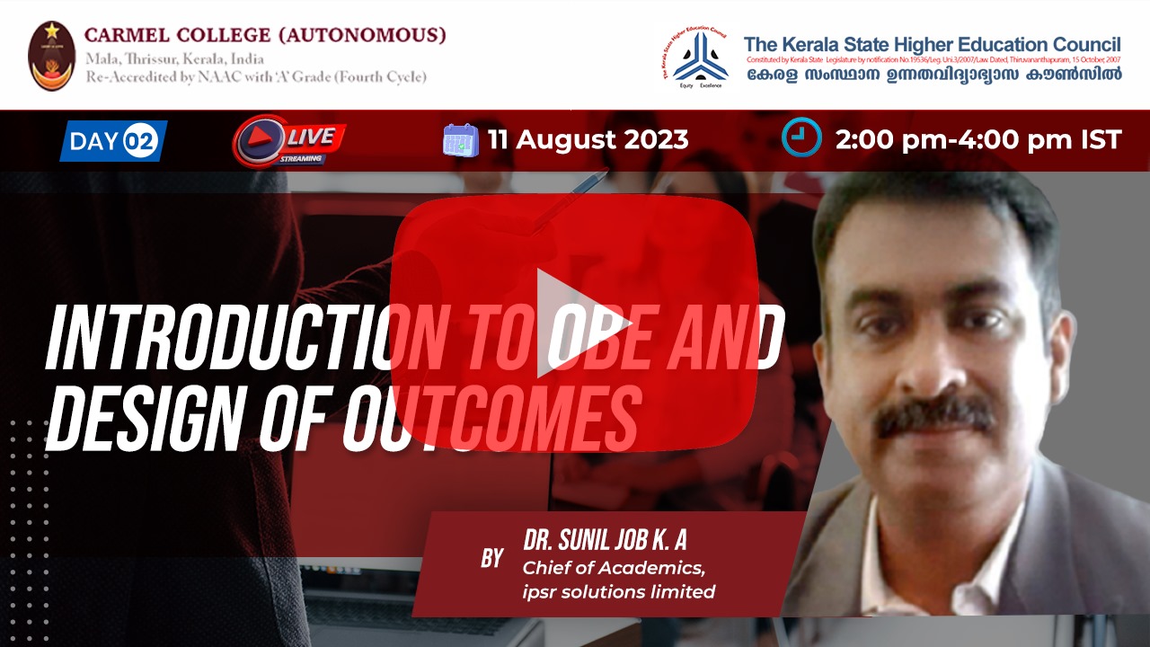 Click to watch the day-2 session Introduction to OBE and Design of Outcomes by Dr Sunil Job KA.
