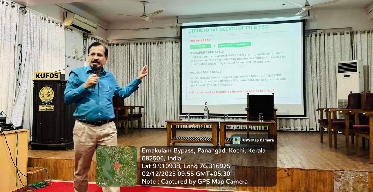 The workshop was graced by the presence of Prof. (Dr.) Pradeepkumar T, Vice-Chancellor, Kerala University of Fisheries and Ocean Studies, Panangad. His valuable insights and support underscored the significance of aligning academic frameworks with modern educational practices.Resource Persons