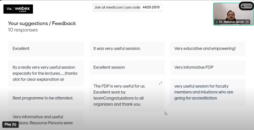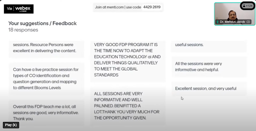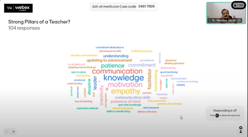 Dr Mendus conducted a Mentimeter survey during the session based on the topic Strong Pillars of a Teacher, where the participants could provide their valuable opinions.