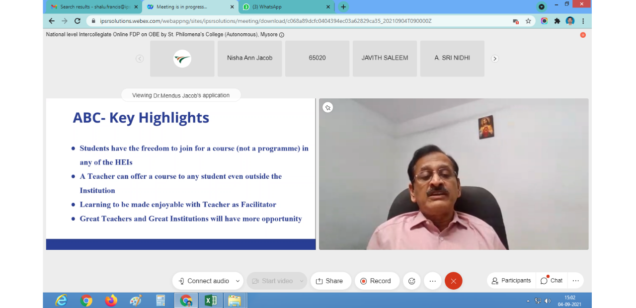 The National level Intercollegiate Faculty Development Program on Outcome-Based Education was a successful event conducted as an online webinar for six days (30th August-4th September) and the main focus of this program was Higher education institution's “OUTCOME BASED EDUCATION” as per the NEP Policy 2020.