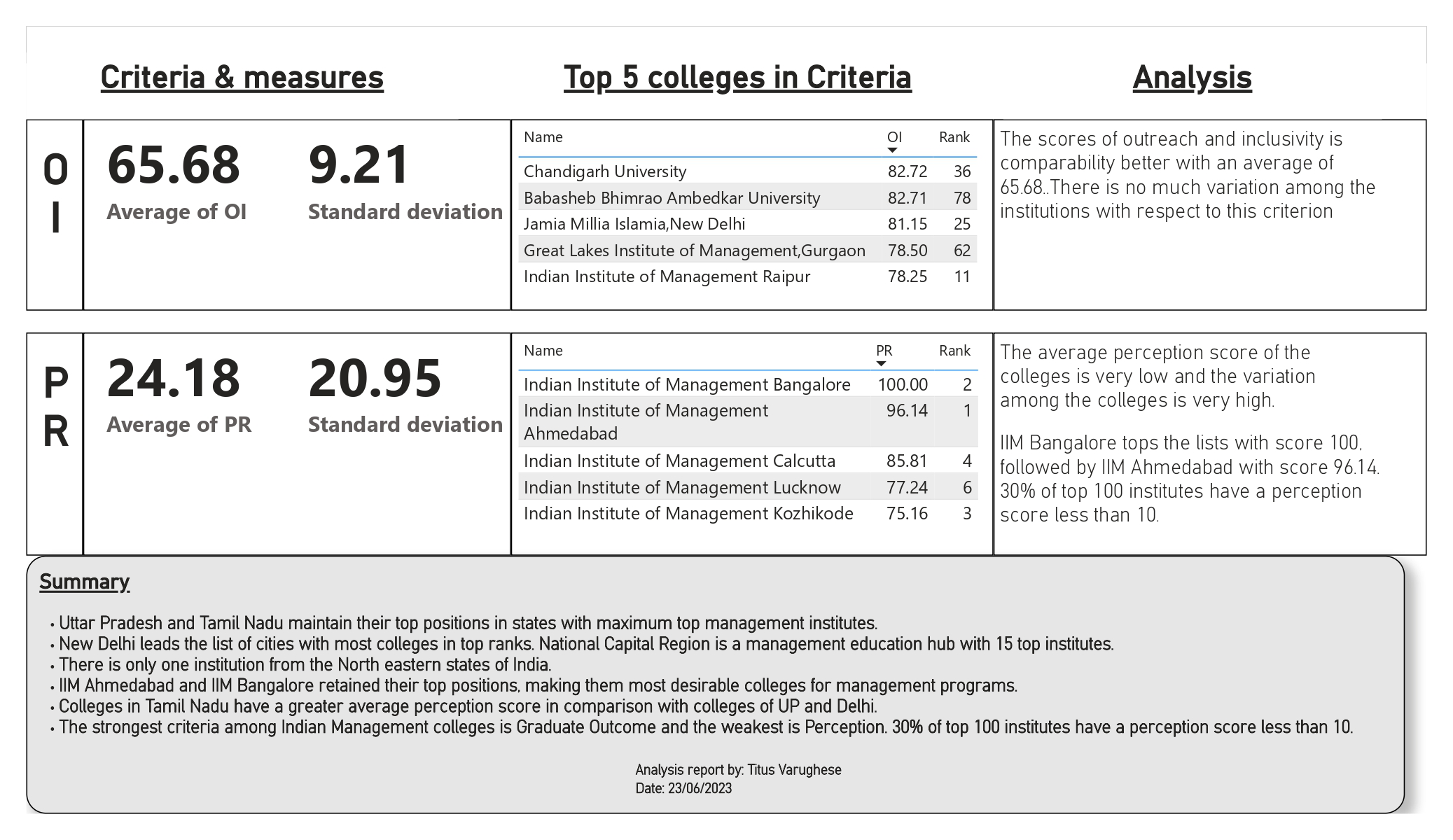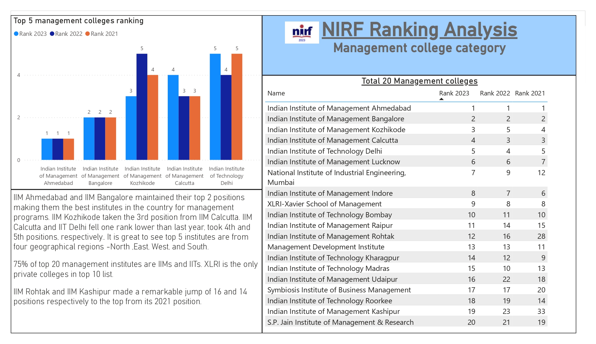 NIRF 2023 Analysis Report Management College Category