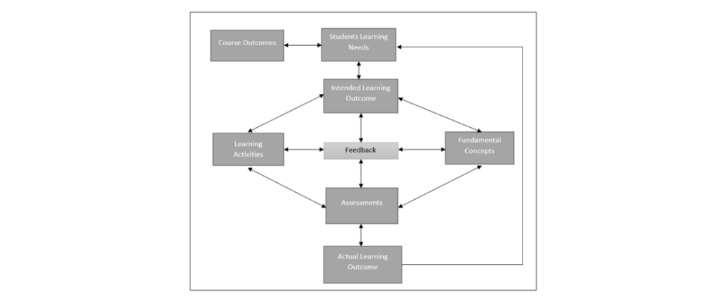 Undoubtedly, the efficiency of an OBE system to a greater extent depends on how well the curriculum is managed and delivered. Drilling down to the course level, it is mandatory that a curricular framework or a course design is needed to assist the teacher and students to navigate through the curricular activities along the right track.