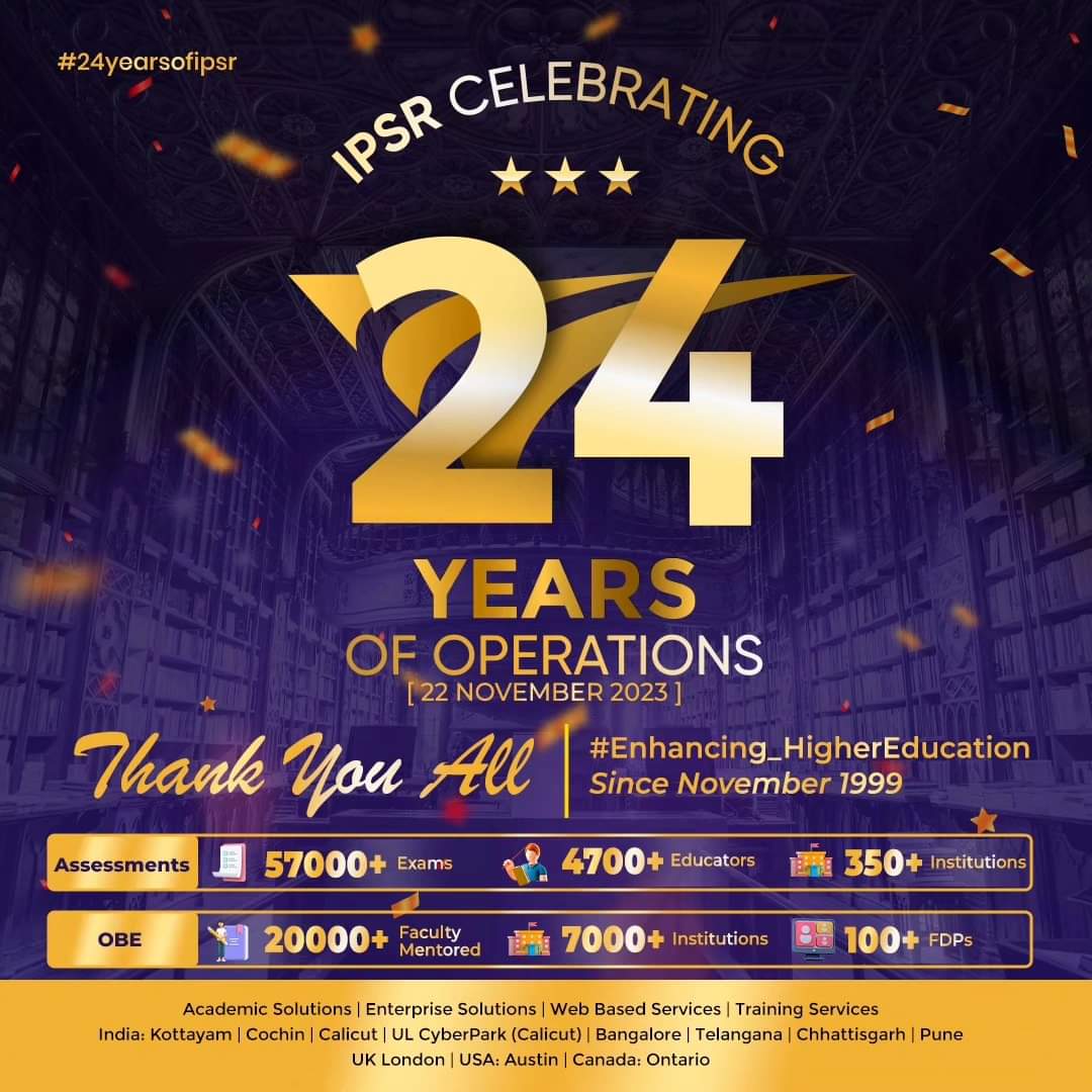 For 24 years, ipsr solutions limited has been a powerhouse in EdTech, specialising in Outcome-Based Education (OBE) and assessments. With a focus on quality initiatives in Higher Education Learning Systems (HELS), our innovative solutions like deQ OBE, deQ Accreditation, deQ Learning, and QnSmart i have reshaped the educational landscape.