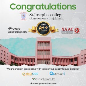 Congratulations to St.Joseph's College (Autonomous), Irinjalakuda, for being accredited with A++ (3.66 CGPA) by the Executive Committee of NAAC (4th cycle of NAAC Accreditation).