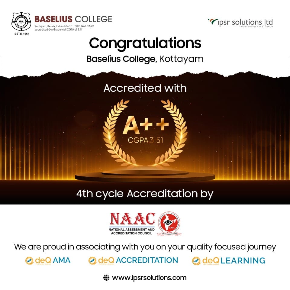 It is with great pride that we received the news that Baselius College, Kottayam has been Accredited with A++ by the Executive Committee of NAAC with CGPA 3.51.