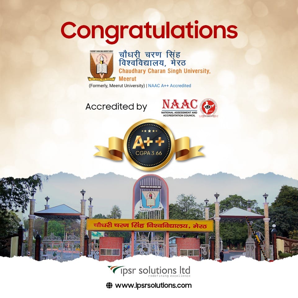 Congratulations to Chaudhary Charan Singh University, Meerut, for being accredited with an A++ (3.66 CGPA) by the Executive Committee of NAAC (4th cycle of NAAC Accreditation). IPSR recently signed an MoU with CCS University for cooperation on FDPs, MDPs, Corporate Training and the implementation of OBE. As a curtain raiser, Dr Mendus Jacob, conducted a OBE workshop at the Mathematics Department of the university.