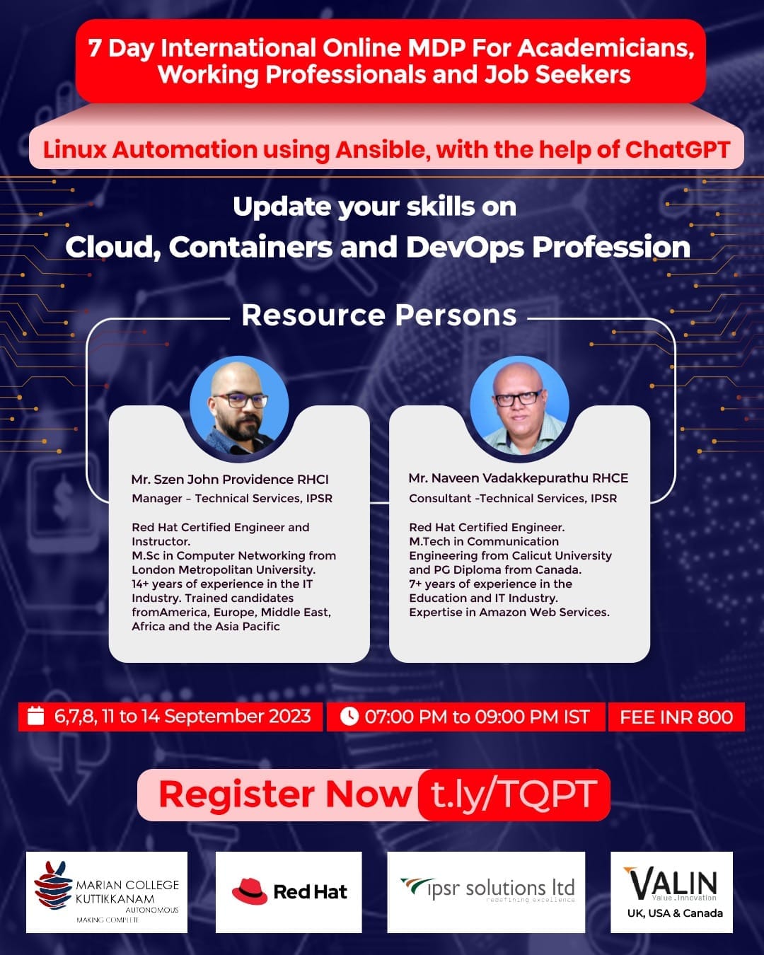 This (MDP III) which is being conducted internationally online, by Marian College Kuttikanam (autonomous) in association with Red Hat, ipsr solutions limited, and Valin - UK, USA & Canada.