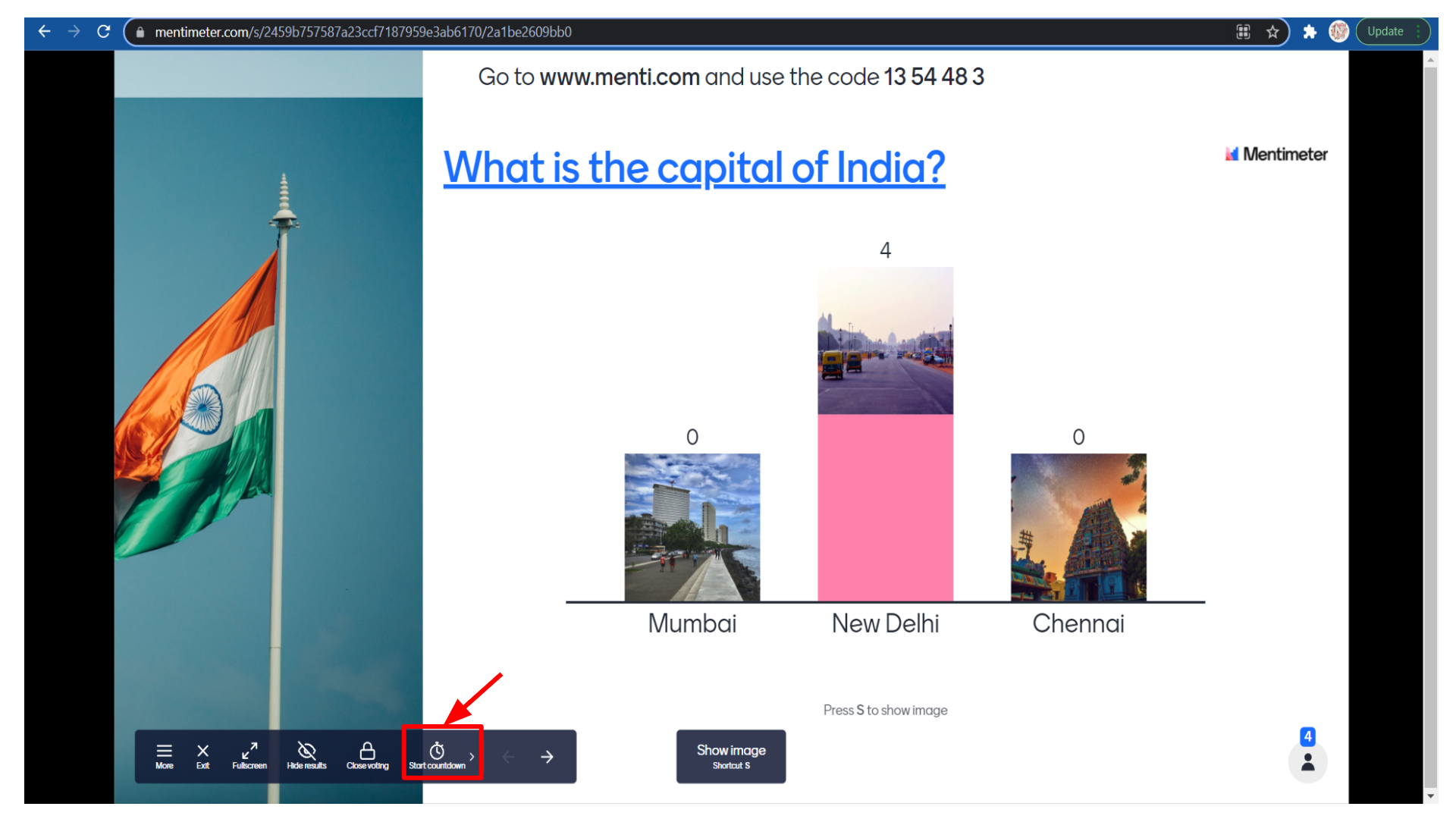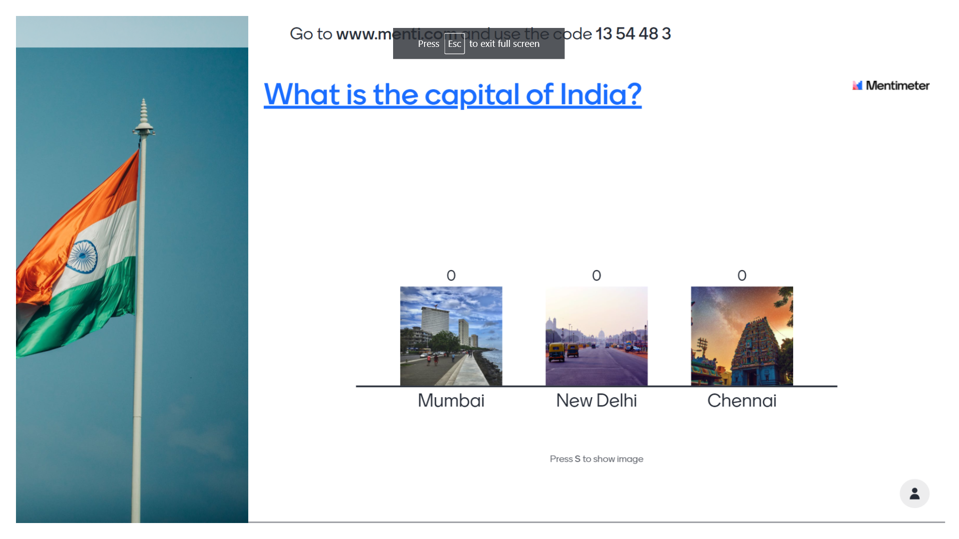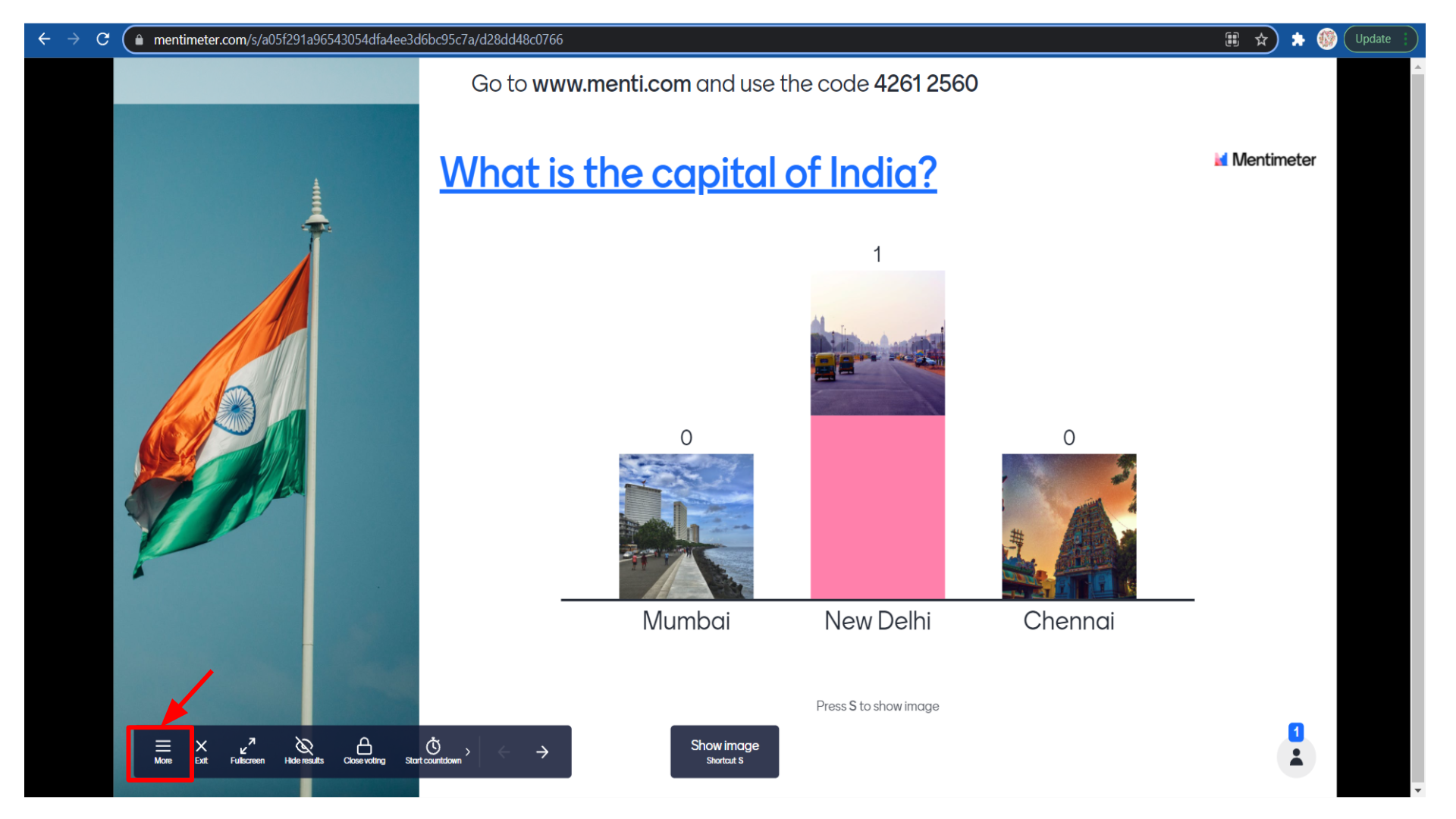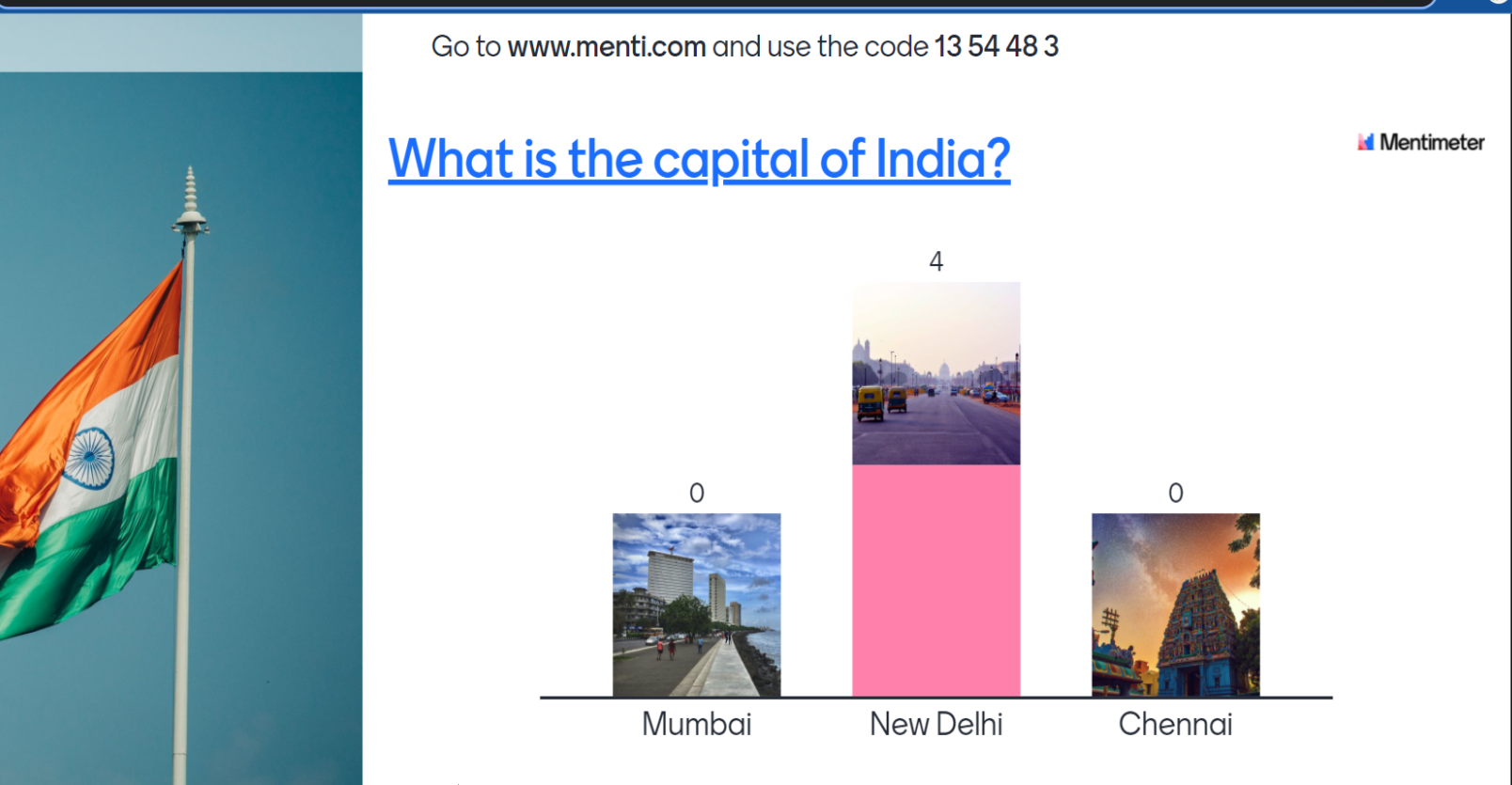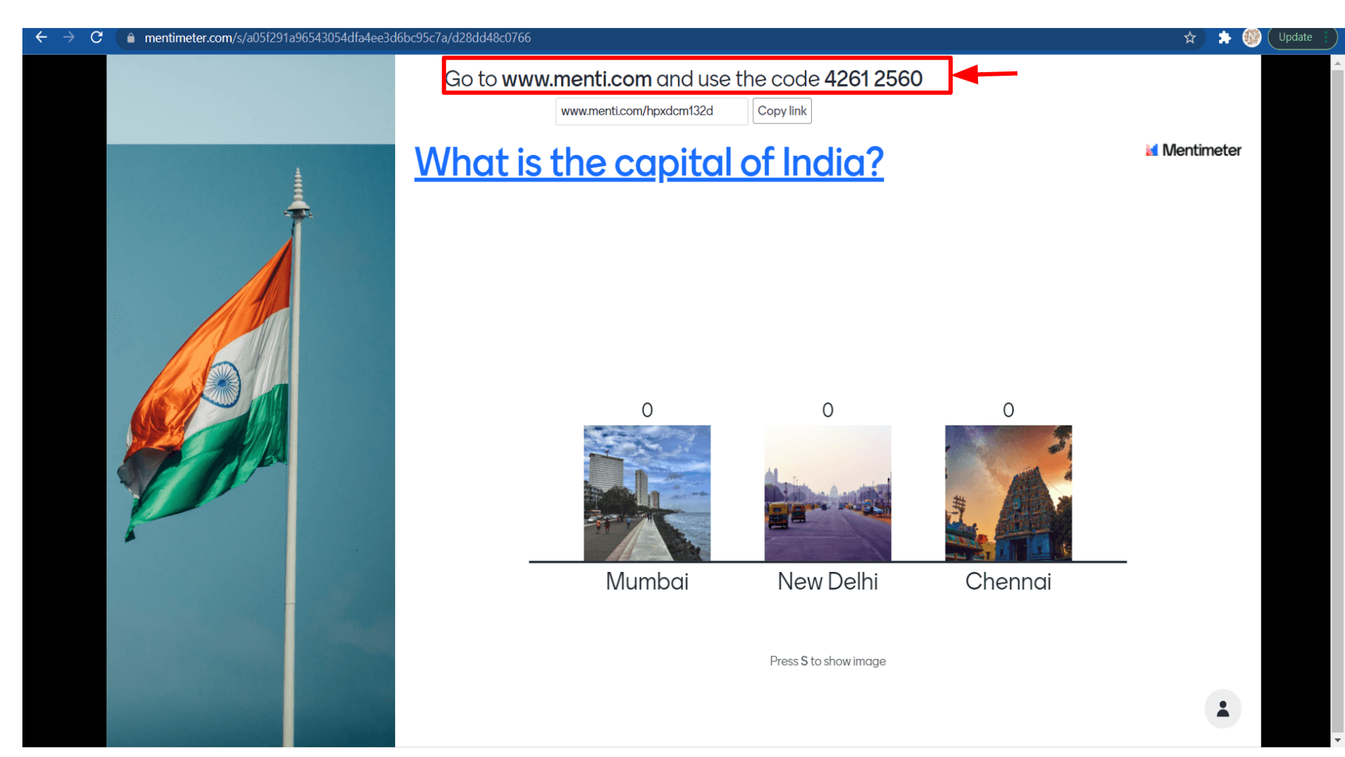 Now open the Mentimeter link in a new tab if you want to see how students will see this particular question. So they will see the image first then the question and then the options. They can select an option and click on the submit button to submit their answers.