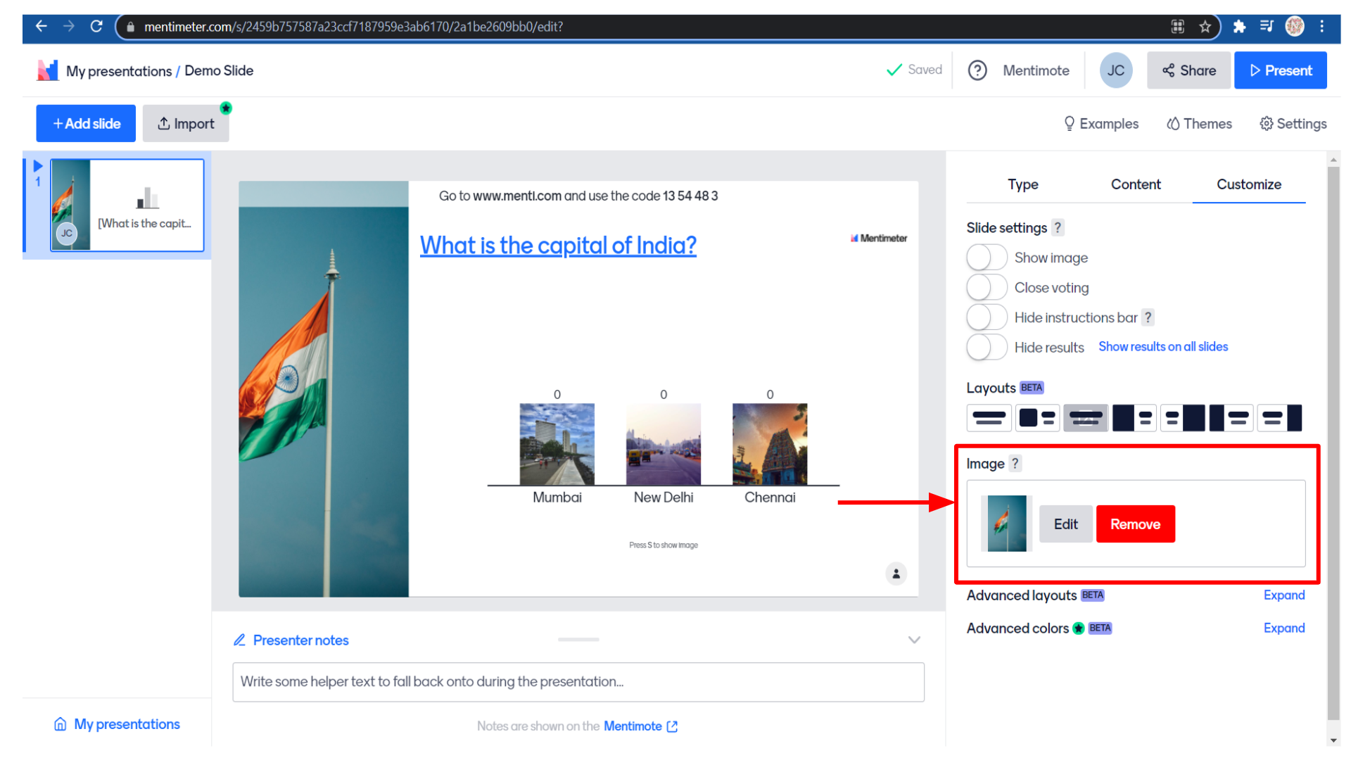 The next tab is the “customize” tab where you can customize your slides according to your wish.