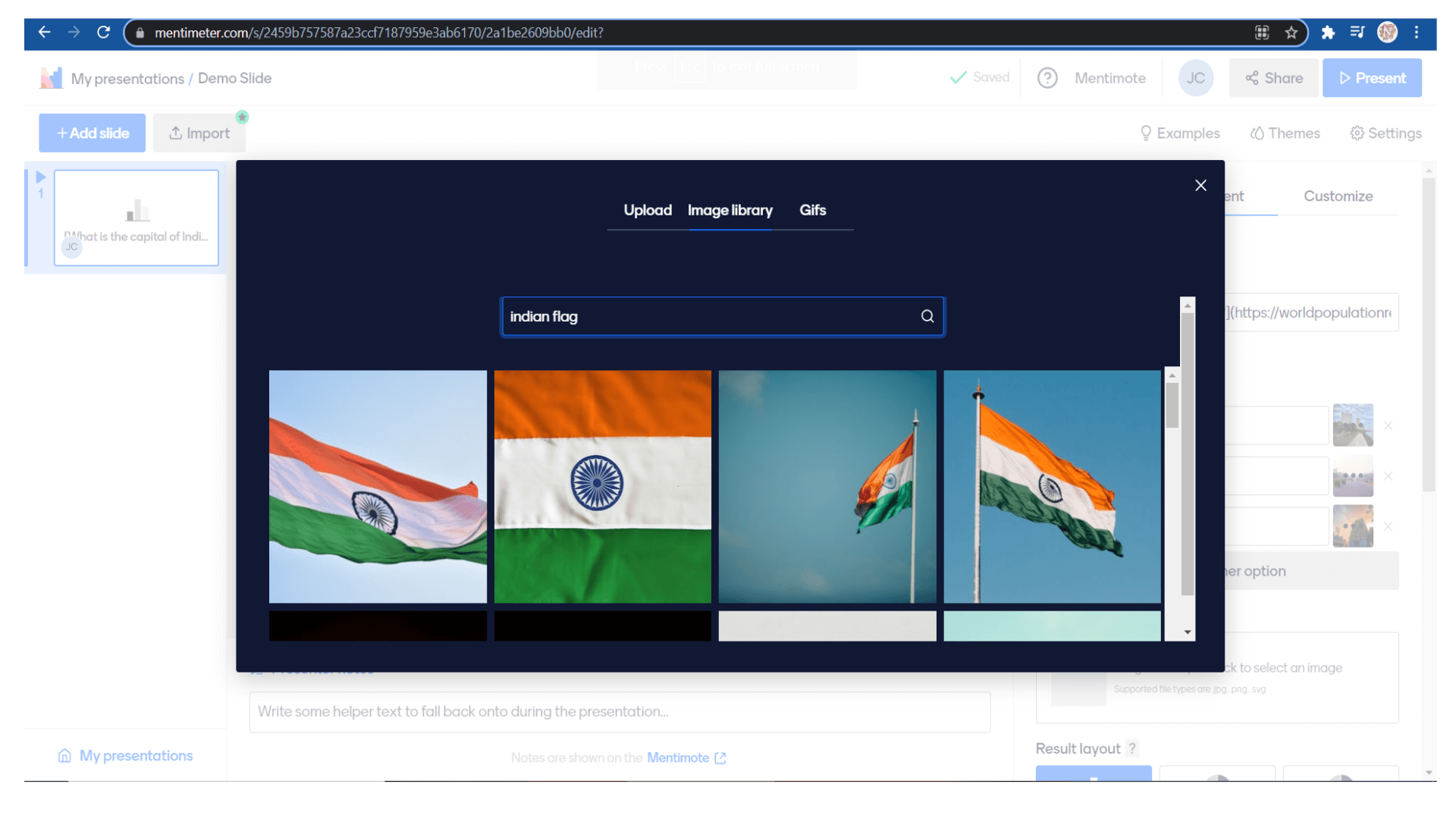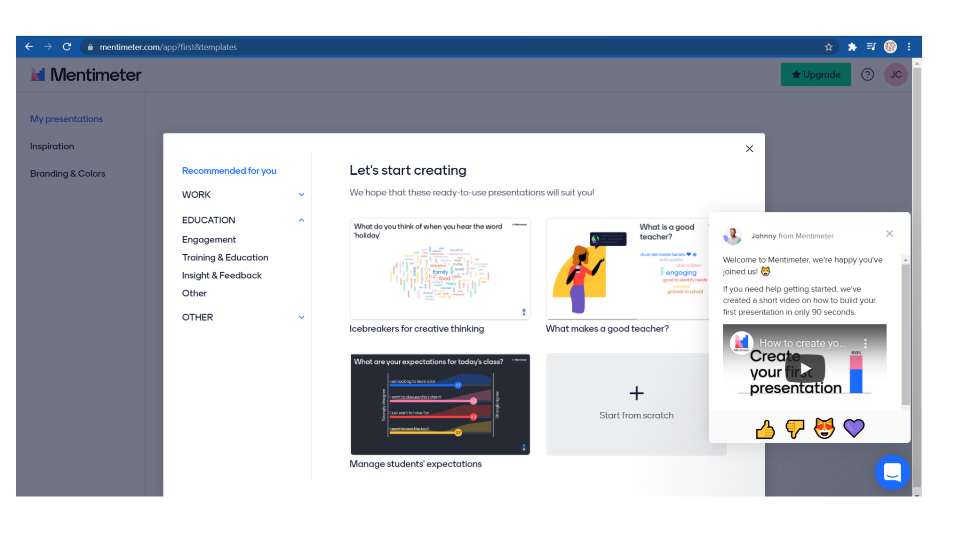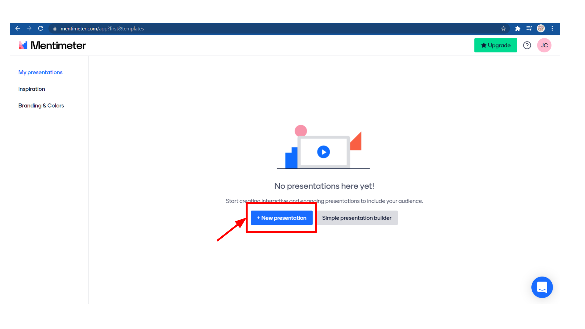 The created presentation can be viewed as a list in the tool for future reference. Using the Upgrade button, you can upgrade the tool for getting advanced features of the Mentimeter tool.