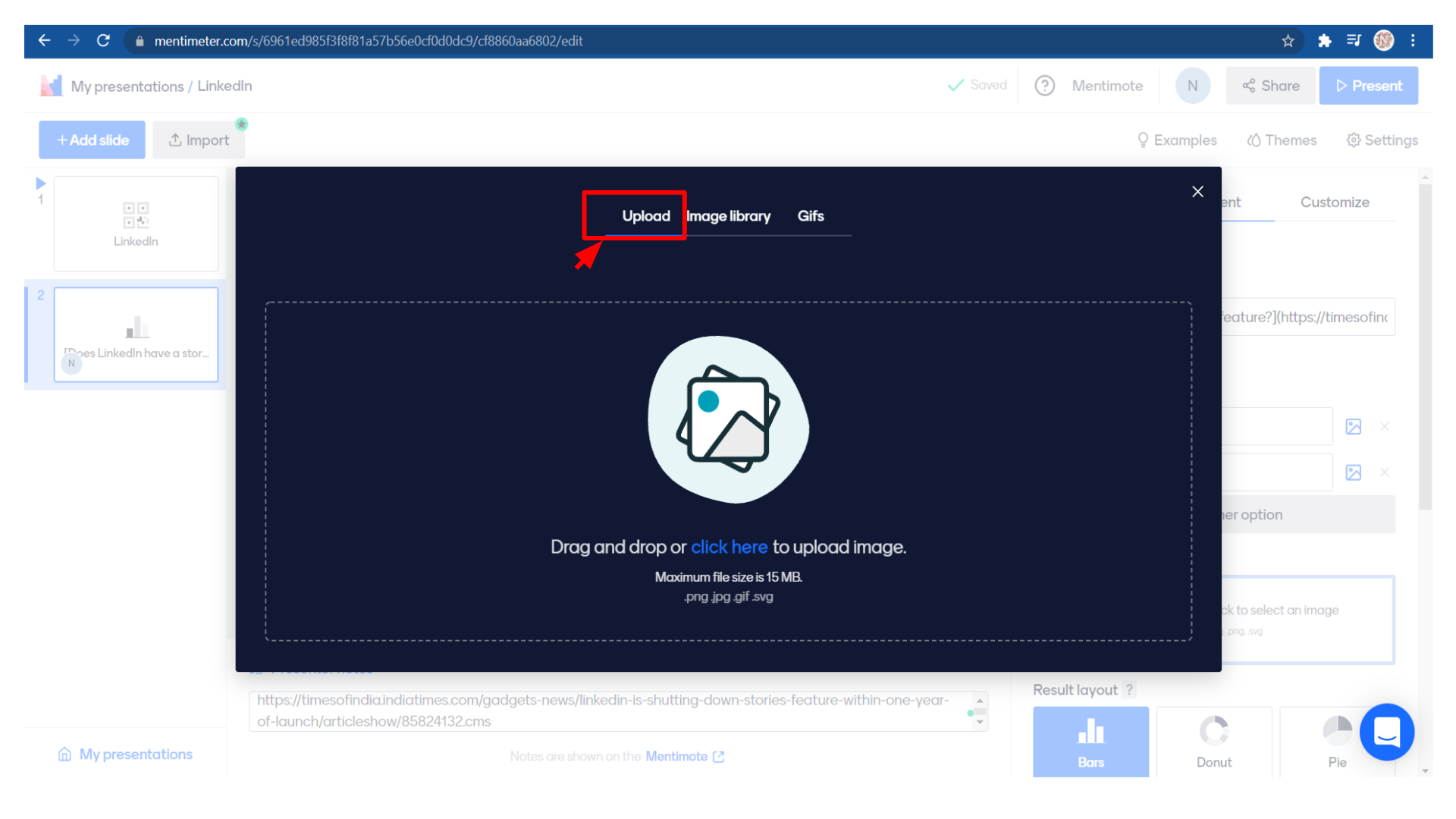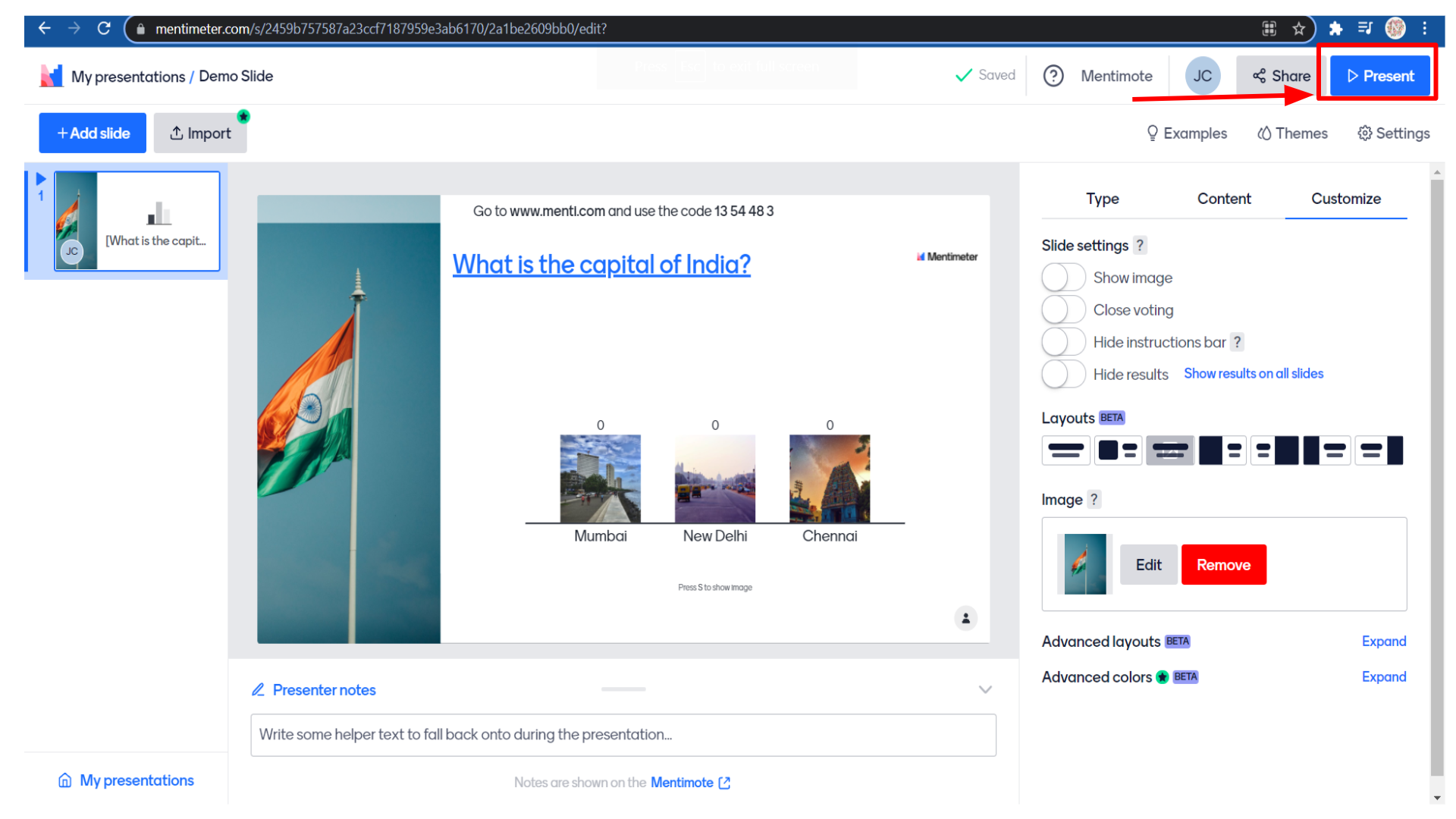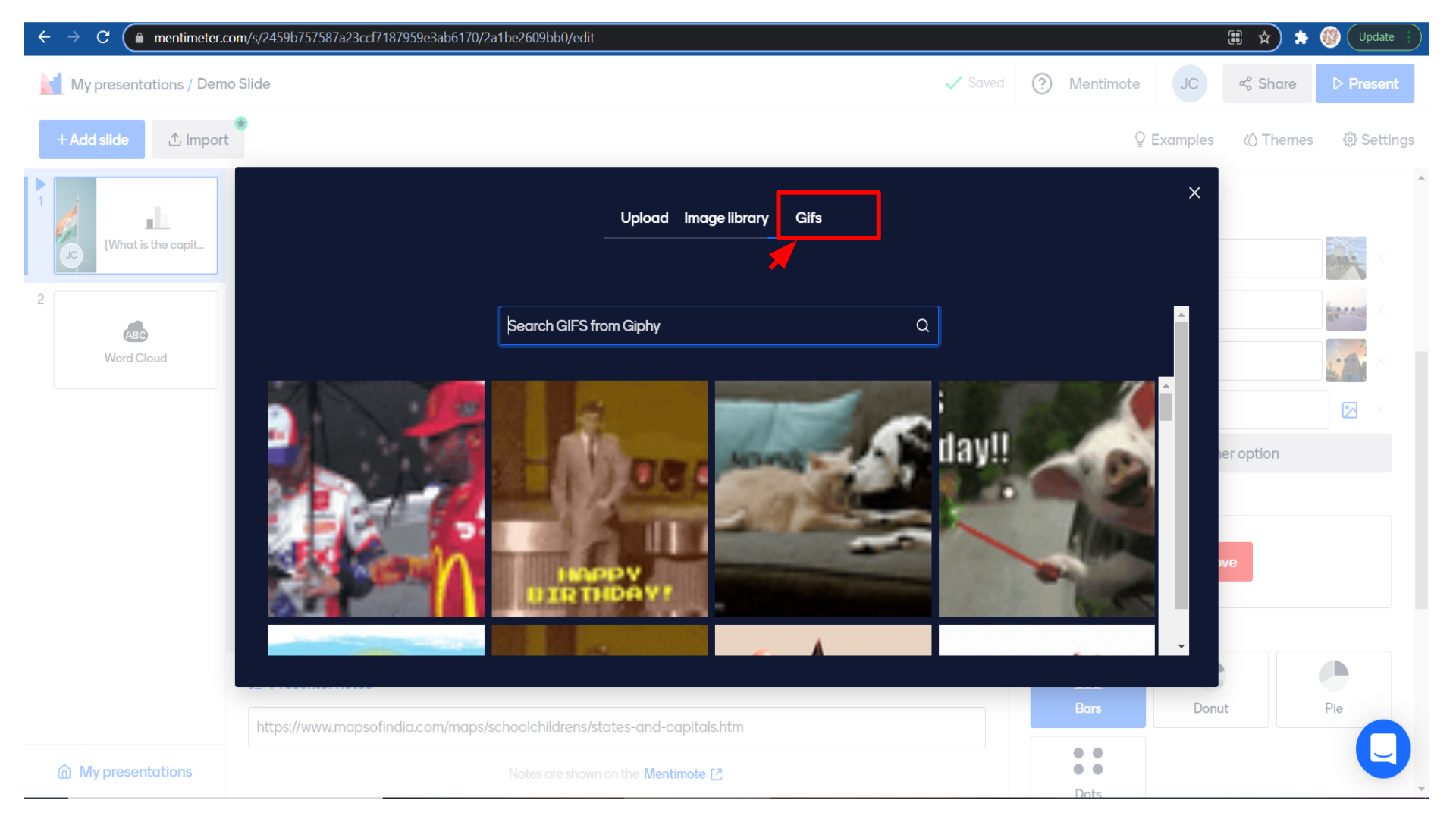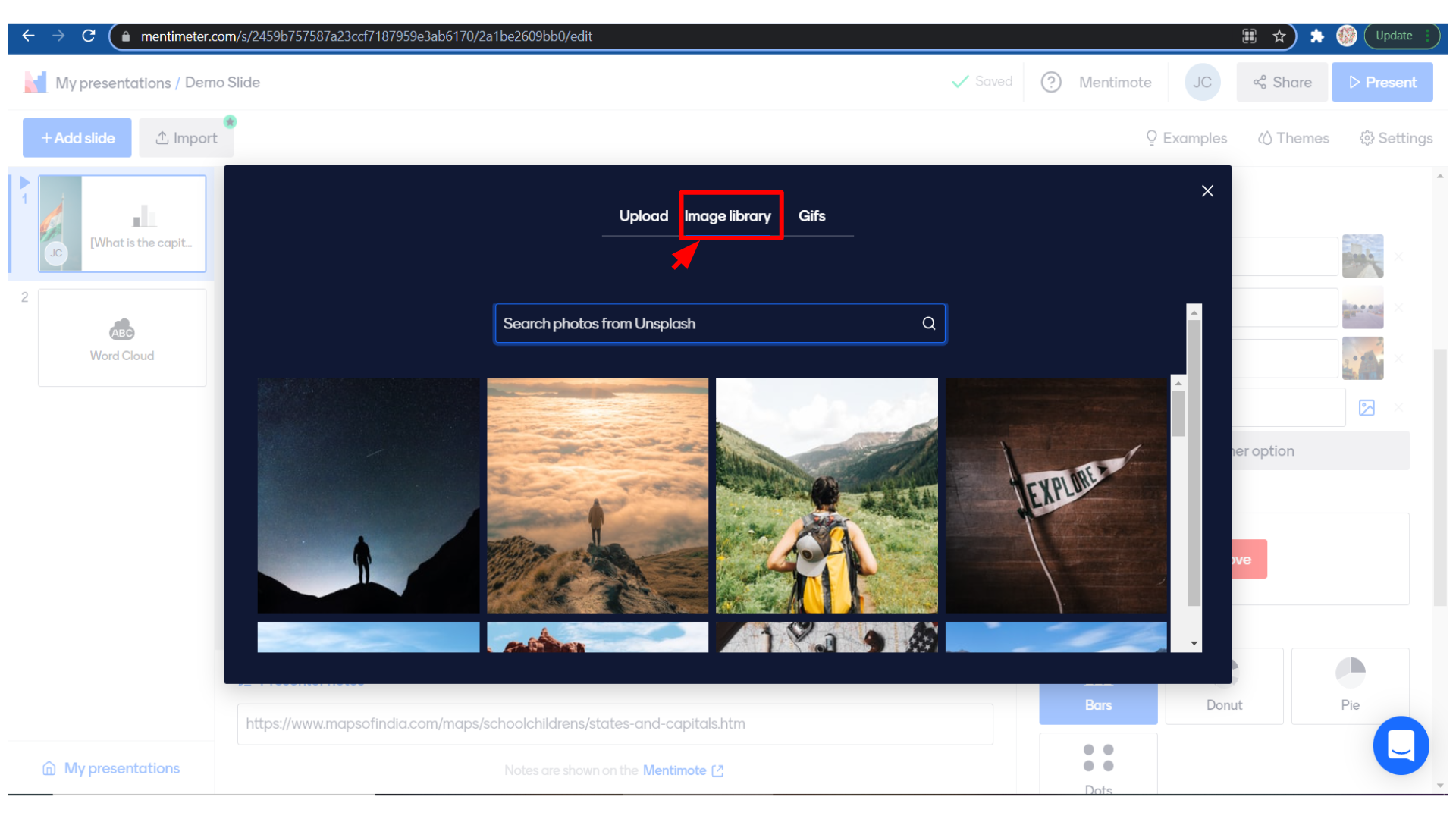 The created presentation can be viewed as a list in the tool for future reference. Using the Upgrade button, you can upgrade the tool for getting advanced features of the Mentimeter tool.