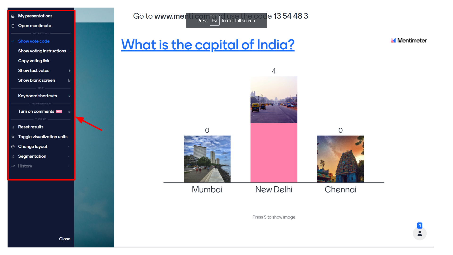 There are some more options like exit, full screen, hide results, close voting, countdown timer, etc.