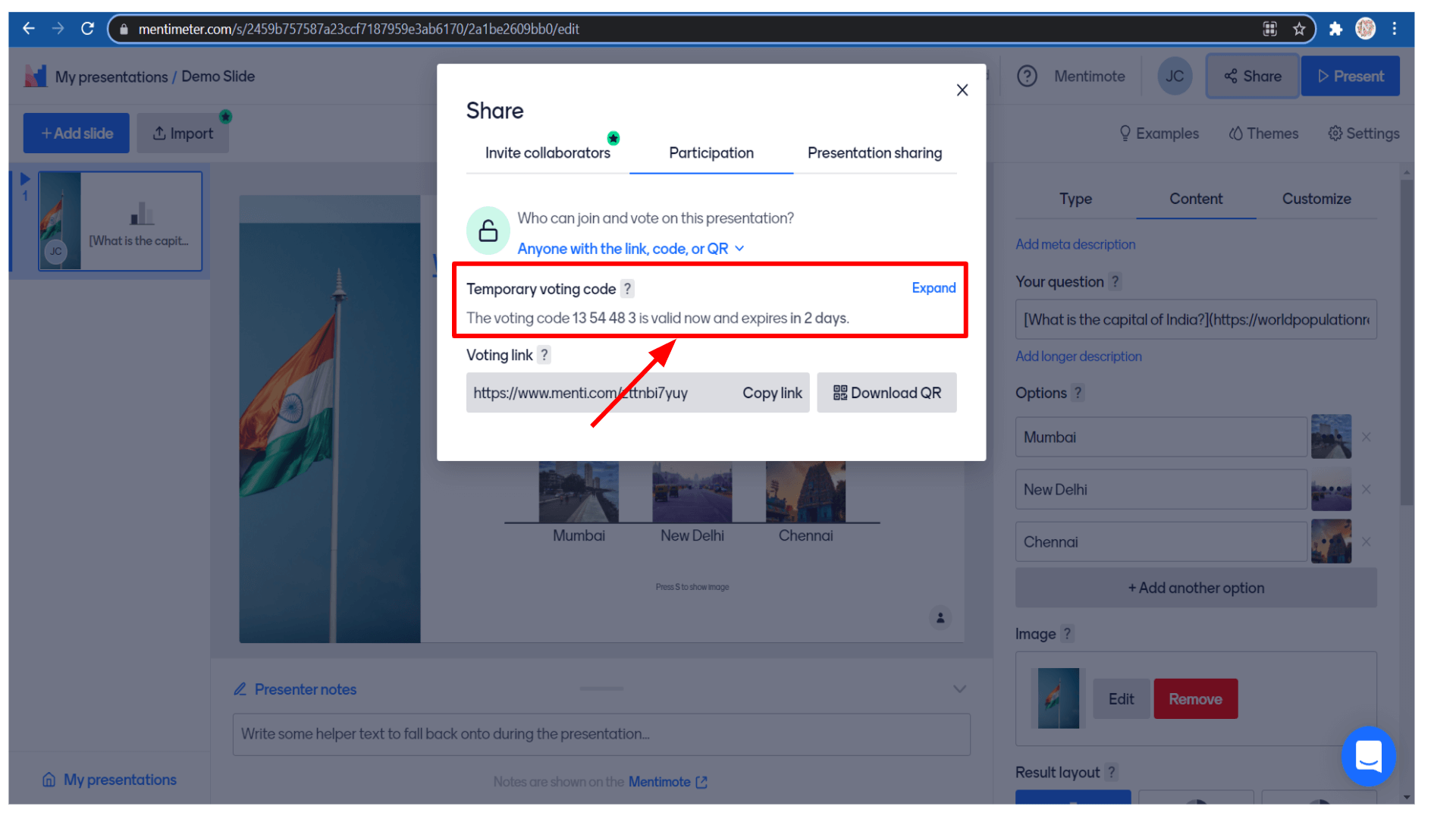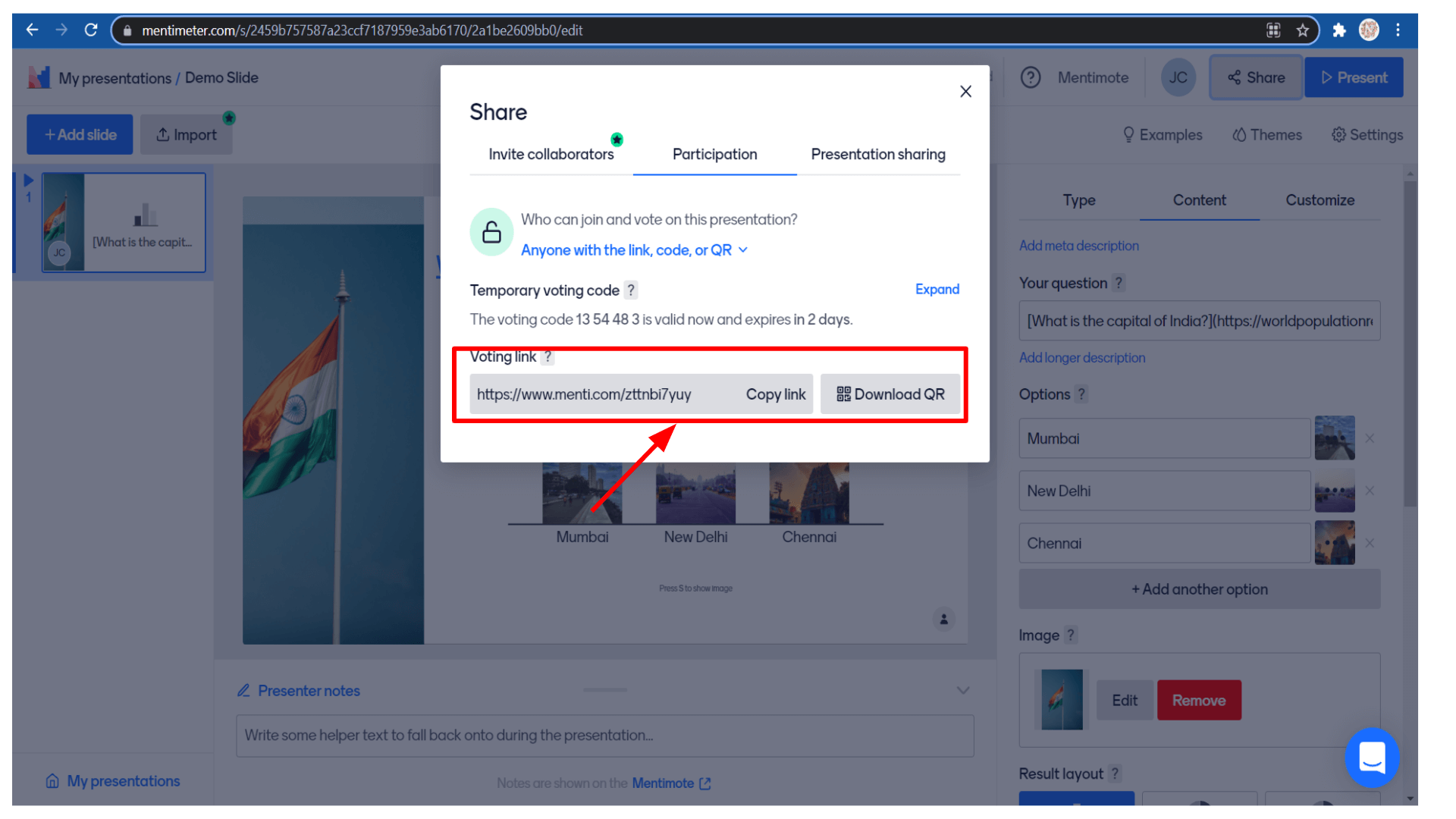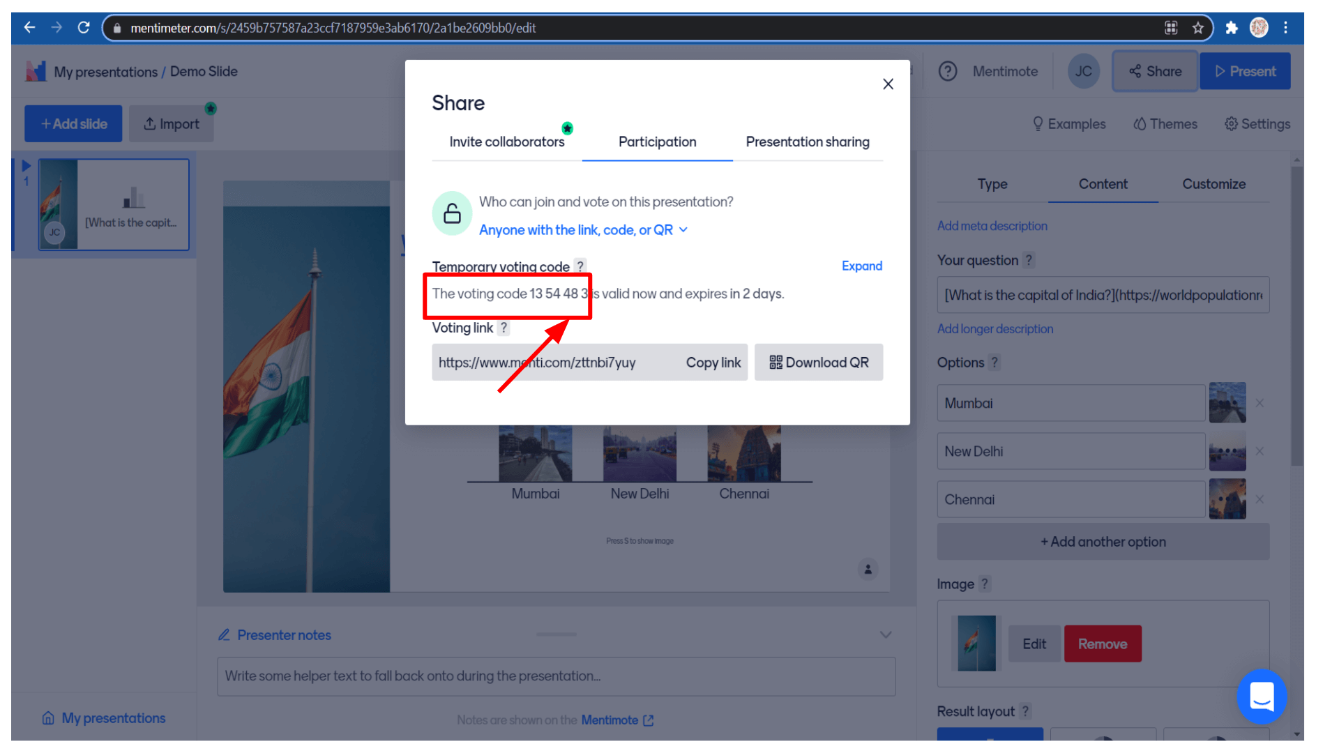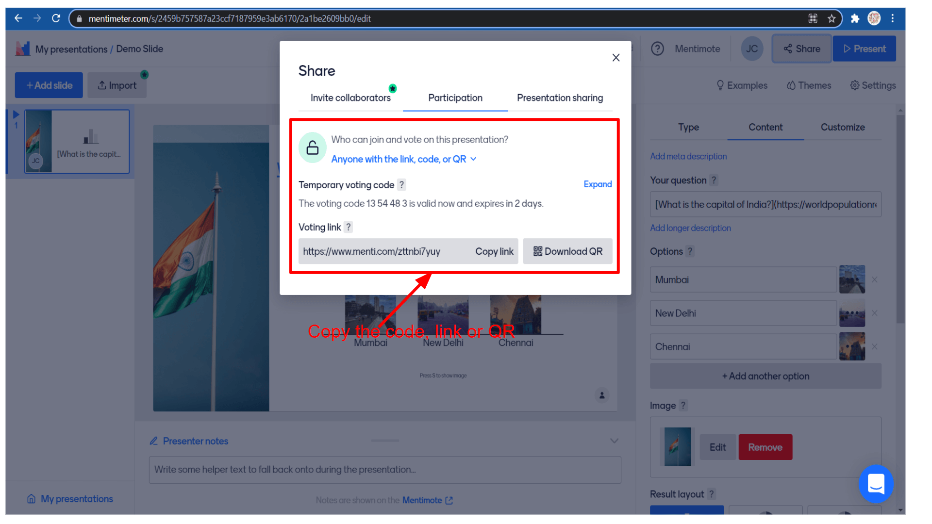 Students can go to www.menti.com and enter the voting code to vote for this presentation.