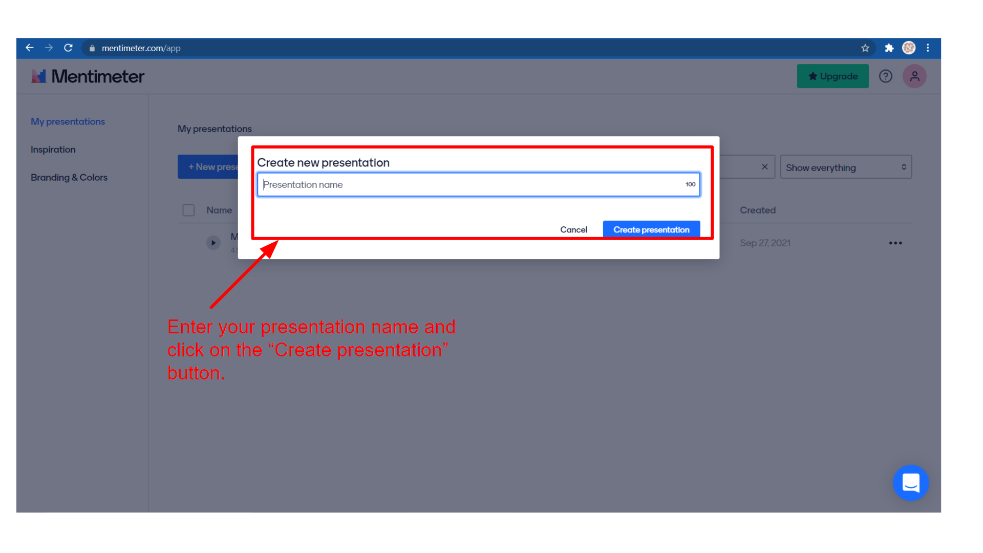 Create a new presentation by entering a name for your presentation and then click on the “Create Presentation” button.